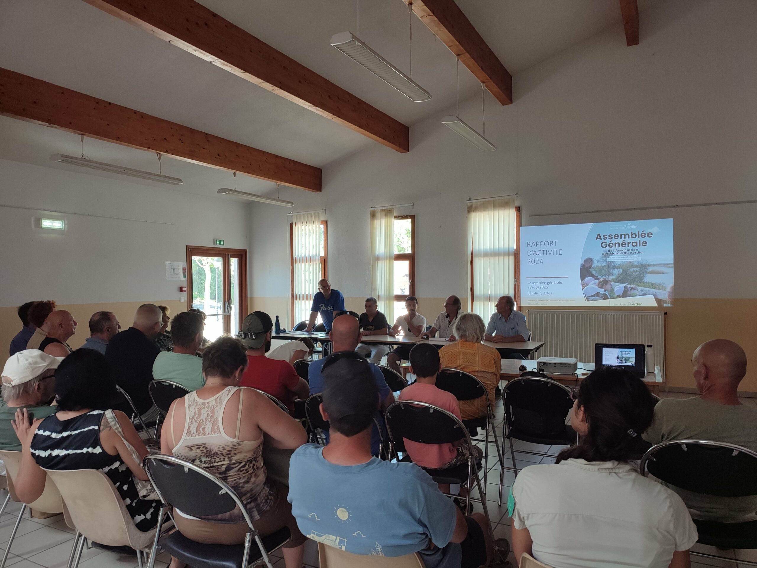 L'assemblée générale de l'association a eu lieu le vendredi 27 juin à 18h à la salle polyvalente du Sambuc. 43 personnes étaient présentes dont 8 personnes appartenant au conseil d’administration de l’association des marais du Verdier, dont son Président André Hoffmann et son Vice-Président Jean Jalbert.