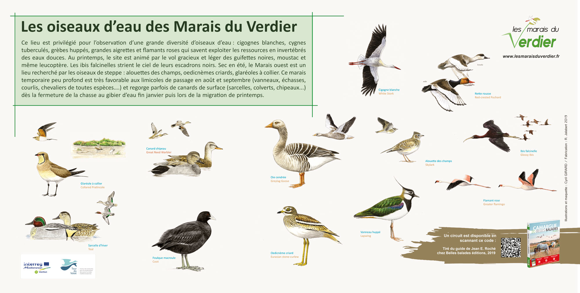 Enfin certaines espèces comme la Cigogne blanche, la Spatule blanche, l’Ibis falcinelle, le Héron Crabier, les Sternes pierregarin ou hansel fréquentent régulièrement le site pour leur alimentation.